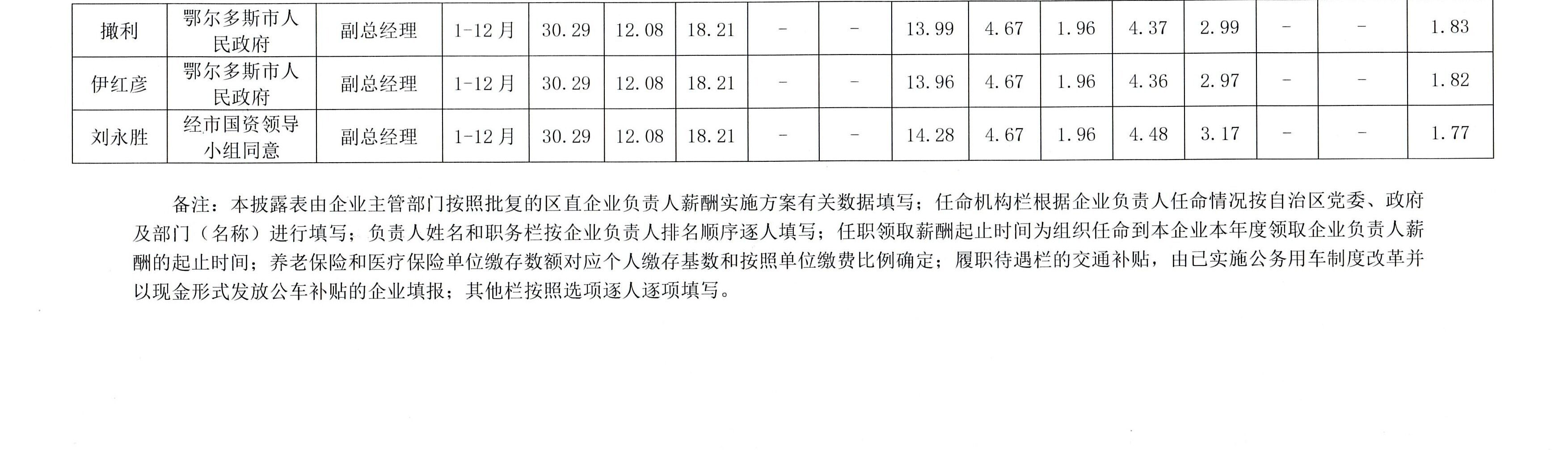 2024年度鄂爾多斯市直屬國有企業(yè)負責人薪酬信息公開披露表