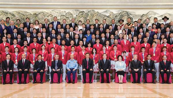 9月15日,中共中央總書記、國家主席、中央軍委主席習近平在陜西省西安市親切會見全國群眾體育先進單位、先進個人代表和全國體育系統(tǒng)先進集體、先進工作者代表,東京奧運會中國體育代表團運動員和教練員代表等,并同大家合影留念。